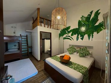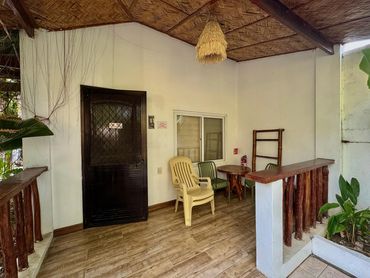 Experience the Casa Angelina's Garden View! The charm of the Garden View Room at Casa Angelina Resort. This air-conditioned room offers a peaceful sanctuary with a private comfort room, ensuring your stay is comfortable and convenient. Enjoy access to a common kitchen area with included cooking utensils and a shared dining area, perfect for meal preparation and social dining. The room features beautiful views of the gardens, providing a tranquil backdrop for your relaxation. Just a few steps from the sand. Perfect for couples, families, or groups seeking a serene coastal retreat.